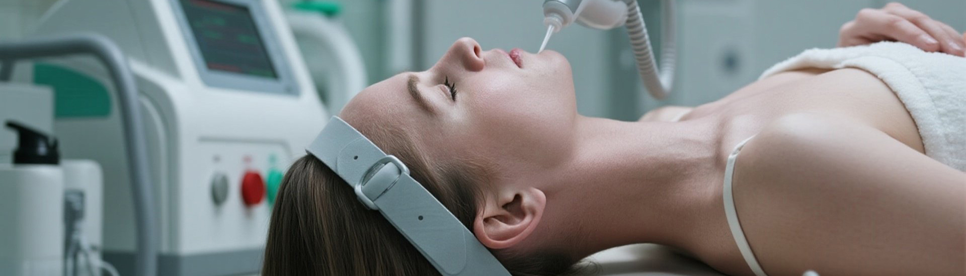 激光技术:精准作用于色素或毛囊,用于祛斑、脱毛。院线级设备如点阵激光治疗仪,能量密度达50mJ/cm²,可穿透至真皮层。